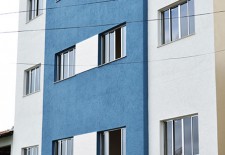 1° pavimento: Três apartamentos com dois quartos, cozinha, sala, área de serviço e banheiro.